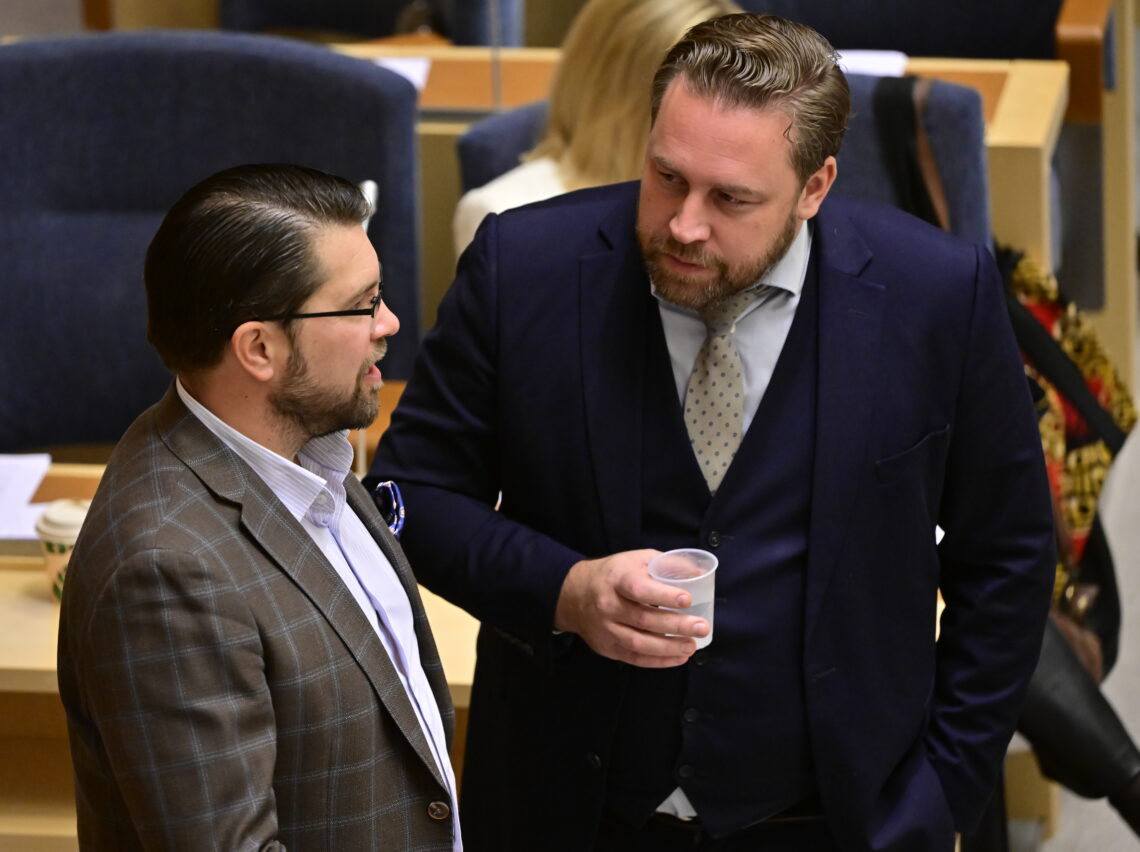 Åkesson og Karlsson mener de europeiske lederne gir etter for press fra «de høylytte og stadig mer truende og voldelige Palestina-aktivistene», i stedet for å føre en ansvarlig og realistisk utenrikspolitikk.