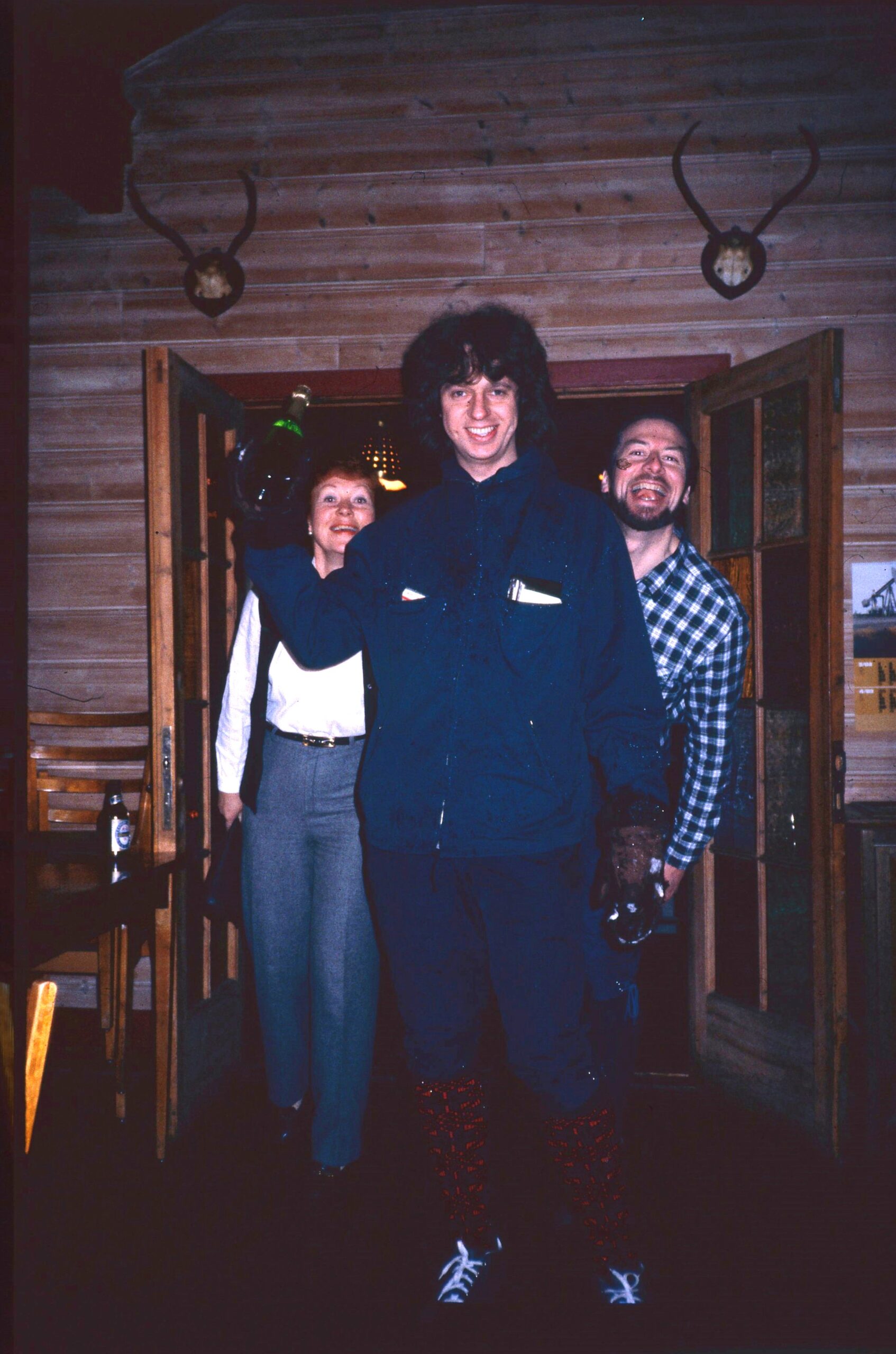 Jeg ble gjerne valgt nest sist i fotball og sprakk i skirenn. Men her er øyeblikket, min seier i bedriftsrennet i idealtid på Skytterkollen tidlig på 80-tallet. Jeg benyttet sekundant. Man må tilte for å komme frem i verden. Foto: Privat.