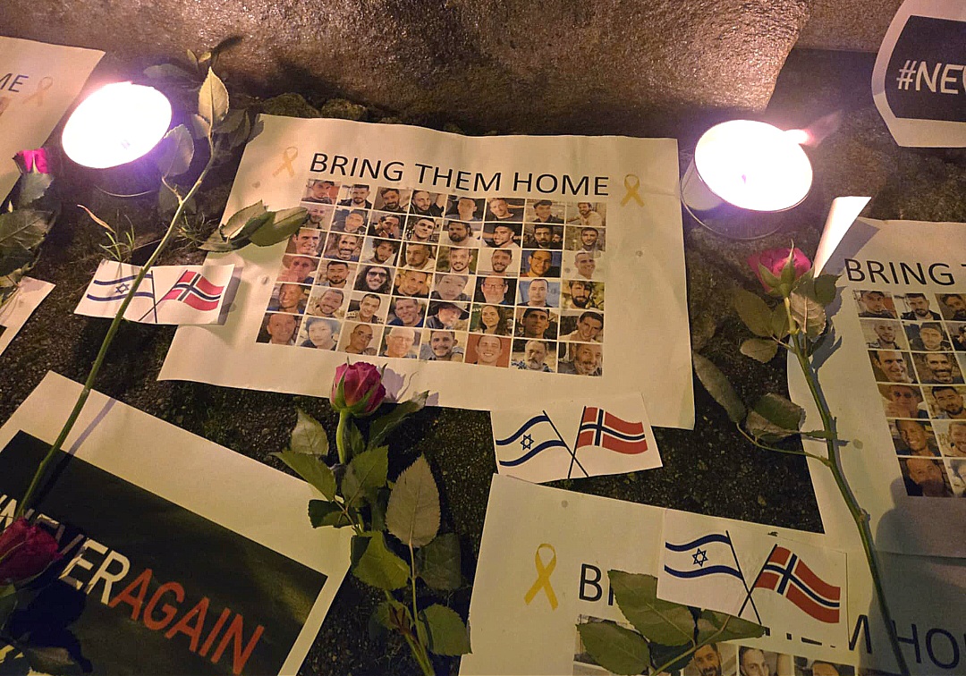 Fra den lukkede minnemarkeringen for 7. oktober i Bergen. Foto: On Elpeleg.