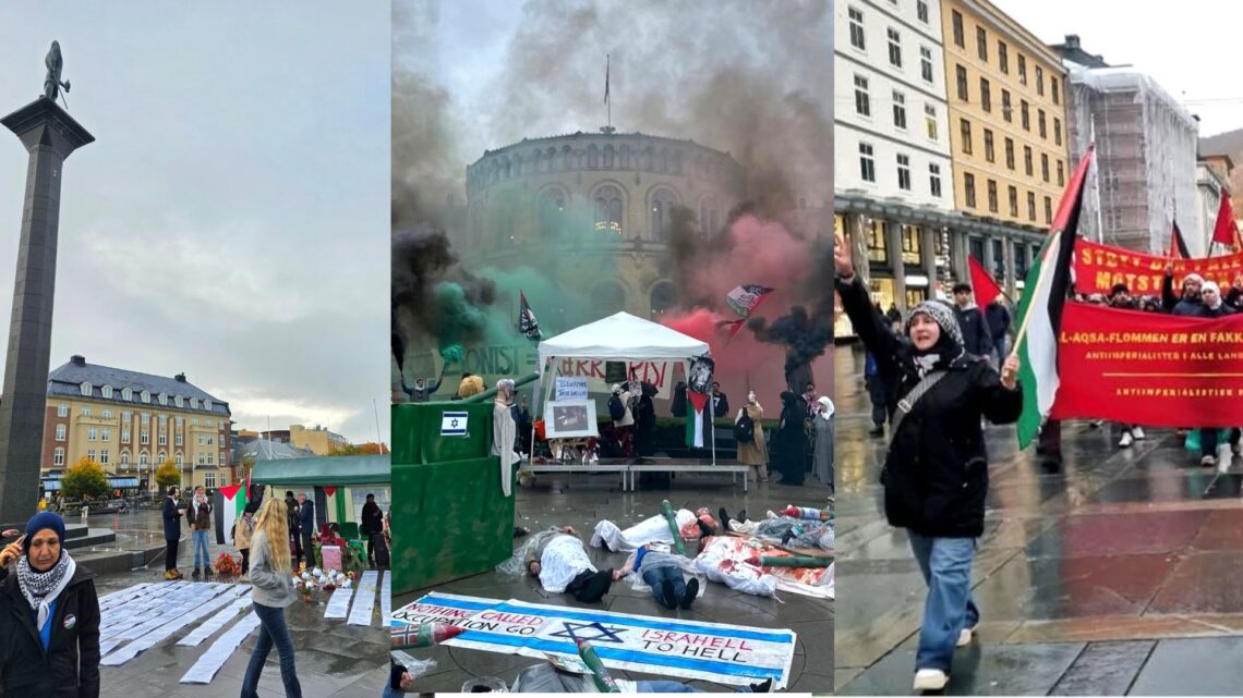 Minnedagen for terrorangrepet mot Israel for to år siden ble preget av Gaza-demonstranter i både Oslo, Bergen og Trondheim. I de to sistnevnte byene var det ingen jøder i sentrum, mens jøder var representert i Oslo sentrum, men var ikke arrangør av minnemarkeringen. I Bergen, Trondheim og Oslo holdt jødene lukkede markeringer, bevoktet av politi.