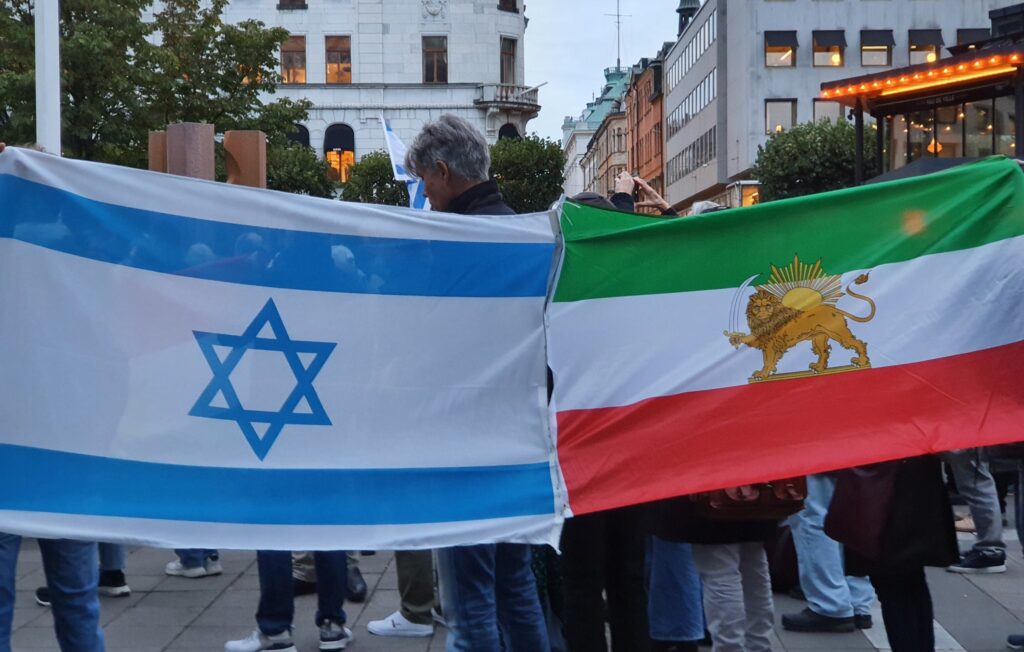 Israelske og iranske flagg under demonstrasjonen. Foto: Document.