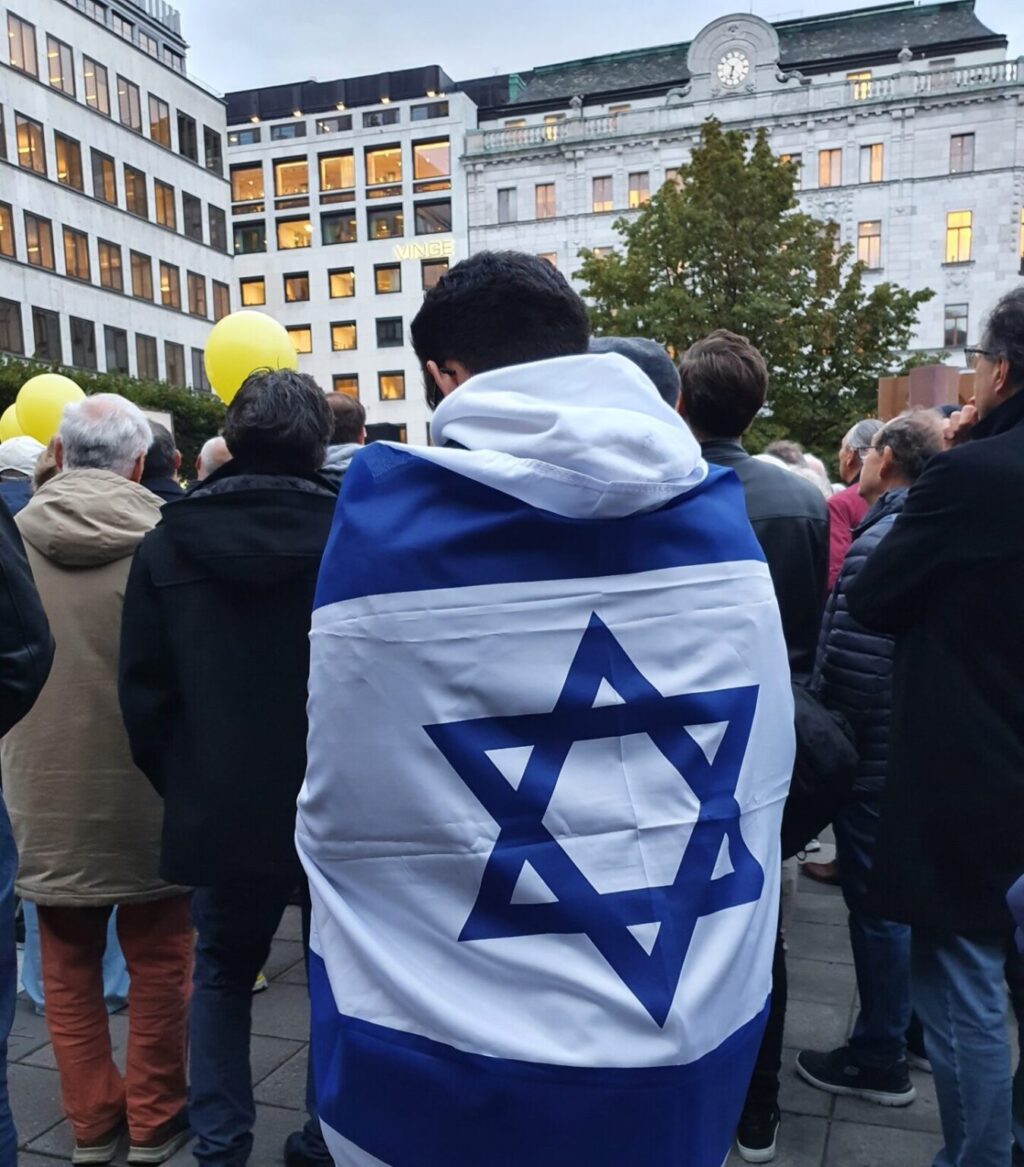 Norrmalmstorg i Stockholm var fylt med sang, taler og flagg tirsdag kveld, da hundrevis av stockholmere samlet seg for å minnes toårsdagen for Hamas’ terrorhandling og for å hylle de 48 gislene – levende og døde – som terrorgruppen fortsatt holder fanget i Gaza.