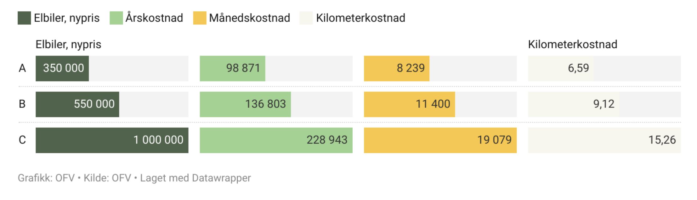 OFV sin rapport er likevel veldig ærlig og nyttig, siden den inneholder noe nesten ingen medier skriver om, og som ingen elbileiere vil snakke om: verditapet. Dette utgjør ofte 35–50 prosent av de totale årlige kostnadene. Også renter, vedlikehold og forsikring er med i kalkylen, og ikke minst: Svært høye reparasjonskostnader samt dekkslitasje. Dette er alltid underkommunisert i media. Å kjøpe ny bil er aldri billig. Det er alltid dyrere enn kjøperen tror, og det har det for så vidt alltid vært.