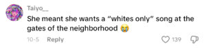 Setningen «I just want you, Have a couple kids, got the whole block looking like you» fikk flere til å påstå at Swift mener hun vil ha et hvitt nabolag, da både hun og forloveden Travis Kelce er hvite.