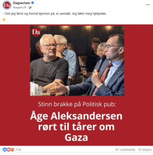 Men høydepunktet, eller kanskje lavmålet, kom i slutten av august 2025, da han sammen med utenriksminister Eide inntok Dagsavisens Politisk pub i Trondheim.