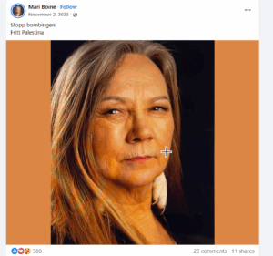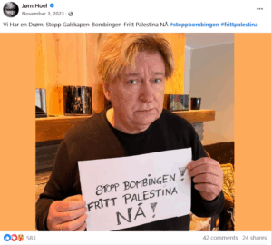 I 2023 gikk han og flere likesinnede ut på Facebook med en oppfordring til å stanse bombingen og frigjøre Palestina.