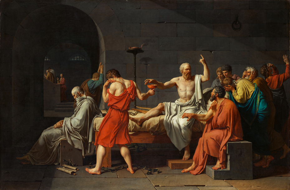 Det sokratiske ideal for samfunnets helbredelse kolliderer med den pragmatiske virkelighet når samfunnet setter seg til motverge. Filosofiens høye krav på åndelig og moralsk lederskap fører til motstand fra et demokratisk samfunn som befinner seg på et lavere nivå. Å tale fritt, å følge sannheten og å tale menneskene til rette for ikke å oppfylle sitt potensiale, er et farlig spill. Likevel kunne Sokrates ikke handle annerledes, for han var overbevist om at han hadde fått et oppdrag av Guden: «…for jeg har trodd og ment at han har gitt meg som plikt å vie mitt liv til å forske etter visdom og granske meg selv og mine medmennesker.»