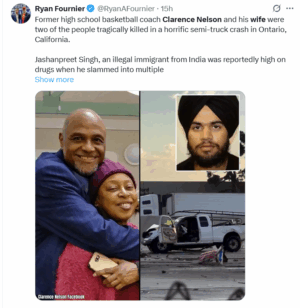 Assisterende sekretær for Sikkerhetsdepartementet Tricia McLaughlin kalte ulykken en fryktelig tragedie, og mente at den kunne vært unngått dersom ikke Bidens åpne grensepolitikk hadde latt en ulovlig innvandrer få kjøre en 18-hjuls lastebil på amerikanske motorveier.