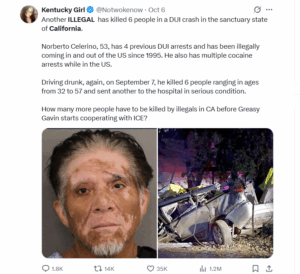 Bare noen uker tidligere ble en annen ulovlig innvandrer, Beto Cerillo-Bialva, siktet for seks drap etter en dødsulykke i California der han kjørte i alkoholpåvirket tilstand og krasjet bilen inn i et tre.