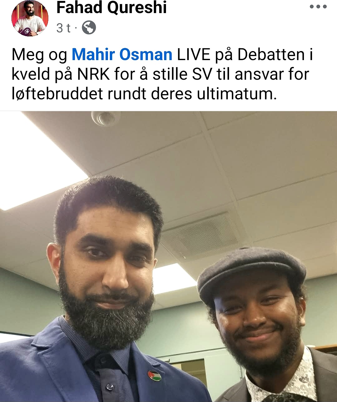 Fahad Qureshi la ut skrytebilde fra opptredenen i Debatten sammen med Mahir Osman. Begge to tilhører det omstridte miljøet Islam Net.