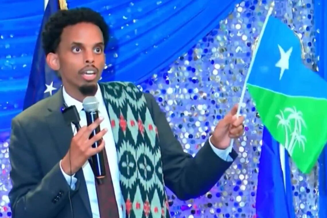 Omar Fateh setter sitt hjemland først ved å snakke somali og vifte med det somaliske flagget under et valgmøte.