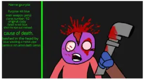 Et annet bilde, «Killing pedos», viser en person med rifle som har skutt to mennesker, hvorav én i blå og rosa klær. Et tredje bilde viser en forvrengt figur med et blodig, knust hode.