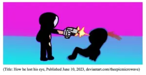 I denne perioden begynte Crooks også å publisere voldelig kunst. Et bilde fra 10. juni 2023, med tittelen «How he lost his eye», viser en svartkledd person som henretter en annen foran en bakgrunn i transflaggets farger.