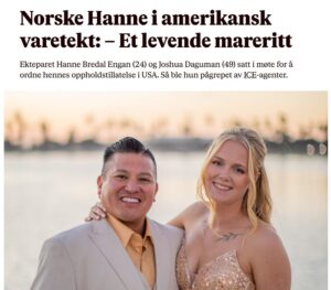 I dag publiserer VG historien om norske Hanne Bredal Engan, som ble pågrepet av ICE-agenter for en uke siden.