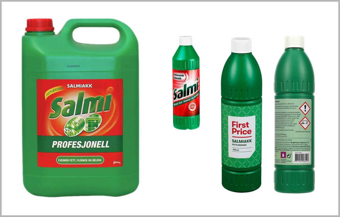 Vaskemiddelet som i Norge selges med merkenavnet Salmi og i dagligtale kalles salmiakk, er en løsning med om lag åtte prosent ammoniakk i vann, i kjemien kjent som ammoniumhydroksid eller ammoniakkspiritus. Blandingen er er etsende og fettløsende og avgir irriterende og i verste fall etsende ammoniakkgass, avhengig av konsentrasjonen.