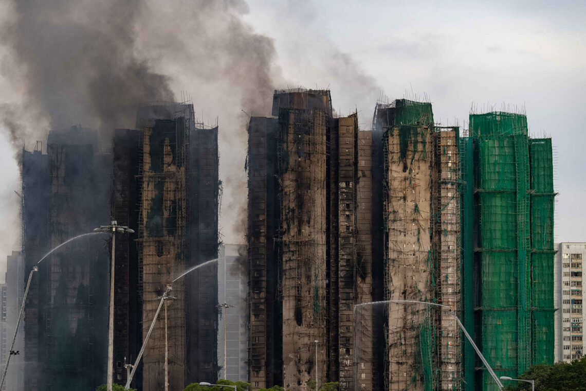 Brannen startet trolig i bambusstillaser utenfor bygningene og spredte seg raskt til innsiden av de 32 etasjer høye blokkene, godt hjulpet av vinden.