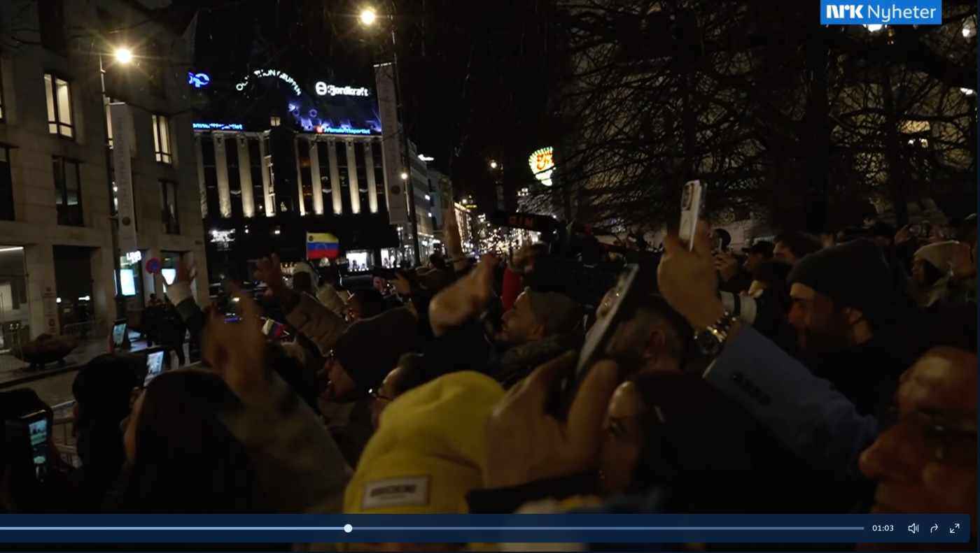 Etter NRKs opptak å dømme, var flere hundre møtt frem midt på natten for å hylle folkehelten fra Venezuela. (Foto: NRK)