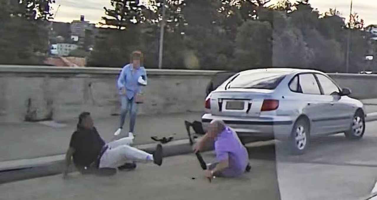 Opptak fra et dashbordkamera, som nå sprer seg raskt på sosiale medier, viser et hjerteskjærende øyeblikk: En mann ligger på bakken ved siden av jihadisten Sajid Akram, mens han holder våpenet han nettopp hadde klart å rive fra ham i et desperat forsøk på å stanse skytingen. En kvinne står like ved – tydelig preget av sjokket.