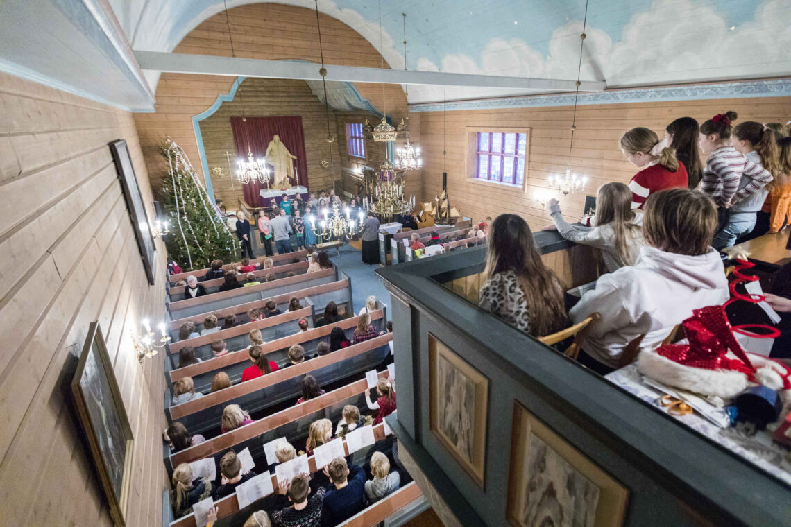 Selv om kirken droppes, beholdes nisser, julepynt og sang. Onsdag var det felles julekonsert for alle trinnene, der elevene sang både kristne sanger og andre juleklassikere.