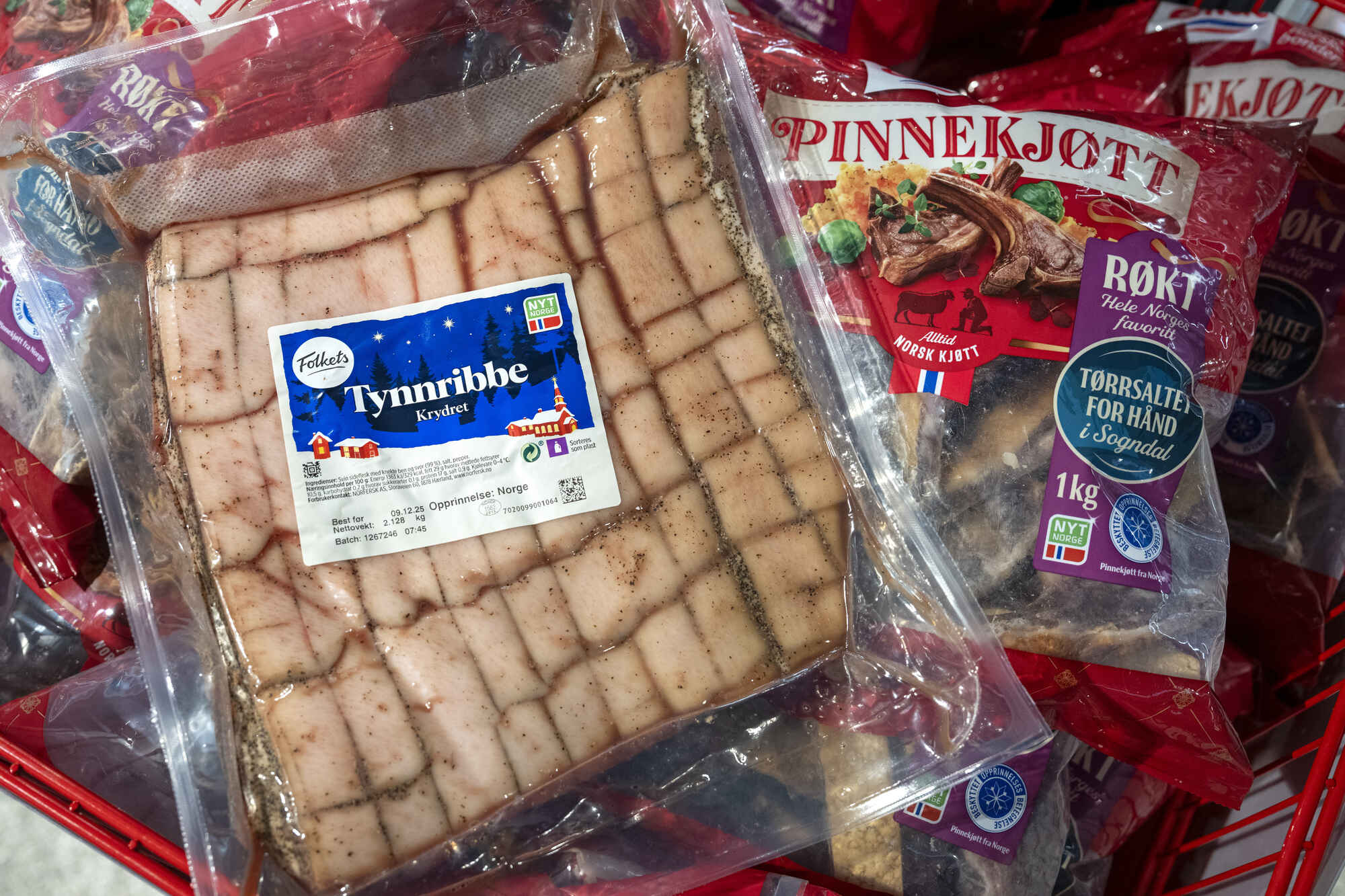 Pinnekjøtt og Folkets tynnribbe i butikk.
