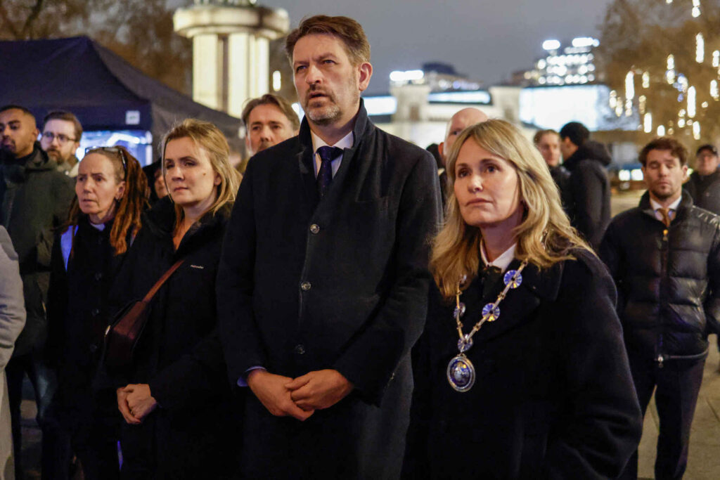 Ordfører i Oslo Anne Lindboe og leder i Oslos byråd Eirik Lae Solberg under en chanukkah-lystenning arrangert av den jødiske organisasjonen Chabad Libovitch på Rådhusplassen onsdag kveld.
