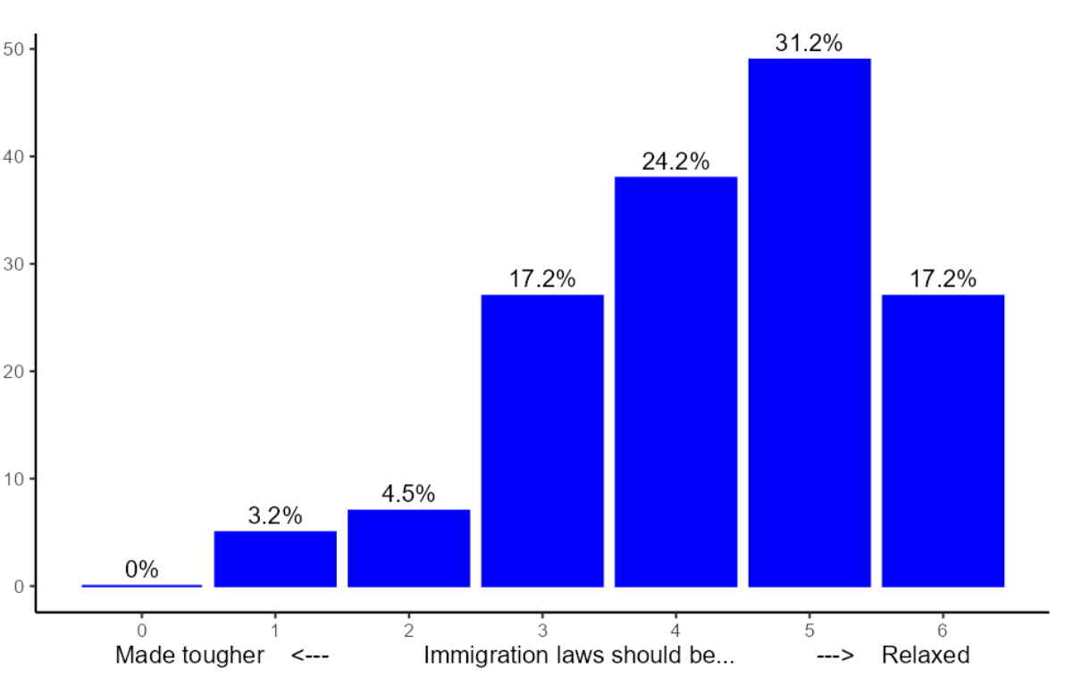 Ikke en eneste forsker valgte den mest restriktive holdningen, det vil si den holdningen som ofte er blant de mest populære i befolkningene. Med andre ord lignet forskernes holdninger på politikernes: Begge grupper er langt mer positive til innvandring enn velgerne.