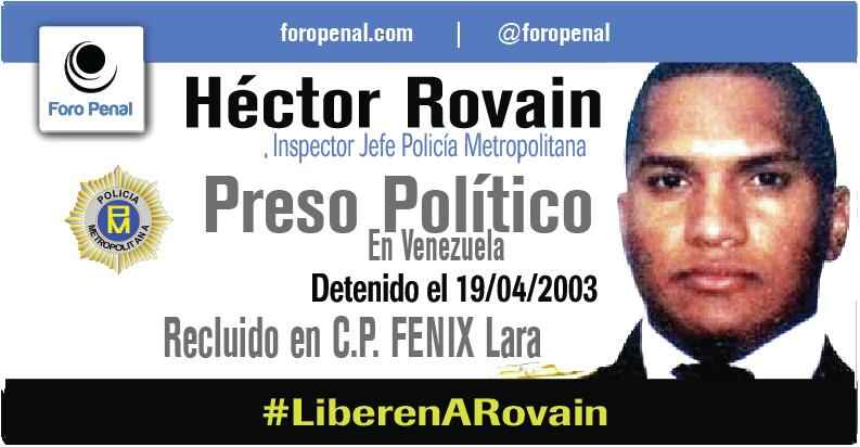 Politiinspektøren Héctor Rovain har sittet i fengsel i over 22 år for å ha beskyttet sivile demonstranter i Caracas, ifølge Foro Penal.