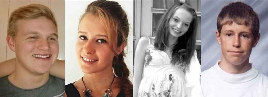 Mange deler bilder av unge drept av innvandrere, og etterlyser at de blir husket. Her er det Håvard Pedersen (18), knivdrept på jobb av en asylsøker, Margaret Molland Sanden (19), knivdrept på en buss av en asylsøker. Eva Helgetun (14), gjengvoldtatt av innvandrere, tok etterpå sitt eget liv, og Vegard Midtveit (18), som skal være jaget i døden av en innvandrergjeng. Foto: Sosiale medier.