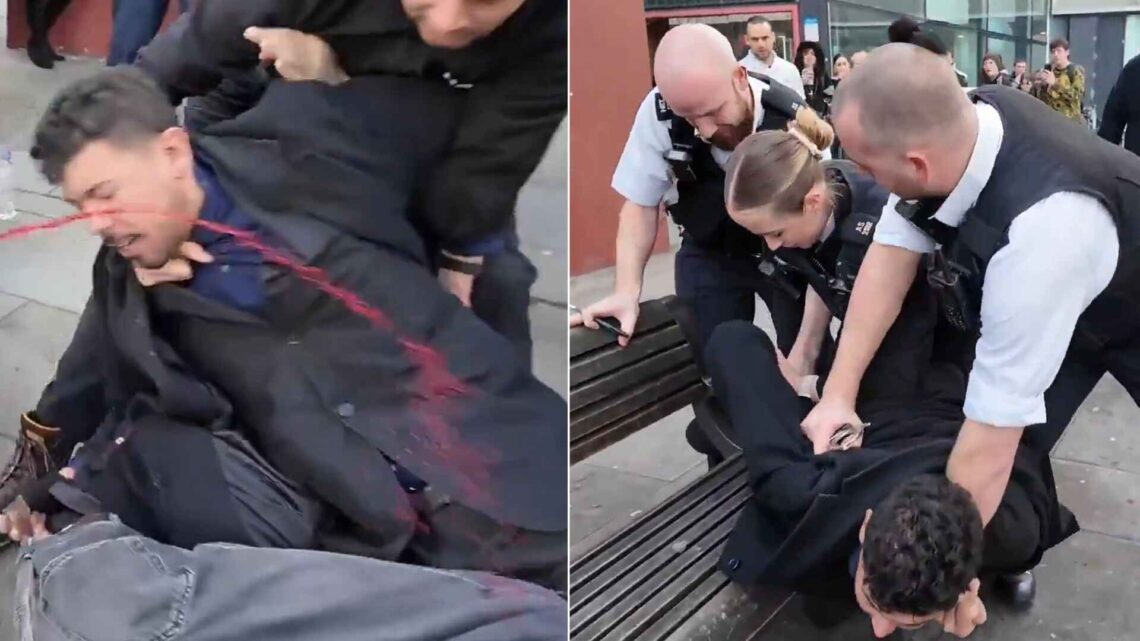 En gruppe britiske aktivister som holdt en fredelig debatt om deportasjoner utenfor et universitet i London, ble angrepet av en student. I stedet for å gripe inn mot angriperen, arresterte politiet mannen som forsøkte å holde gjerningsmannen tilbake.