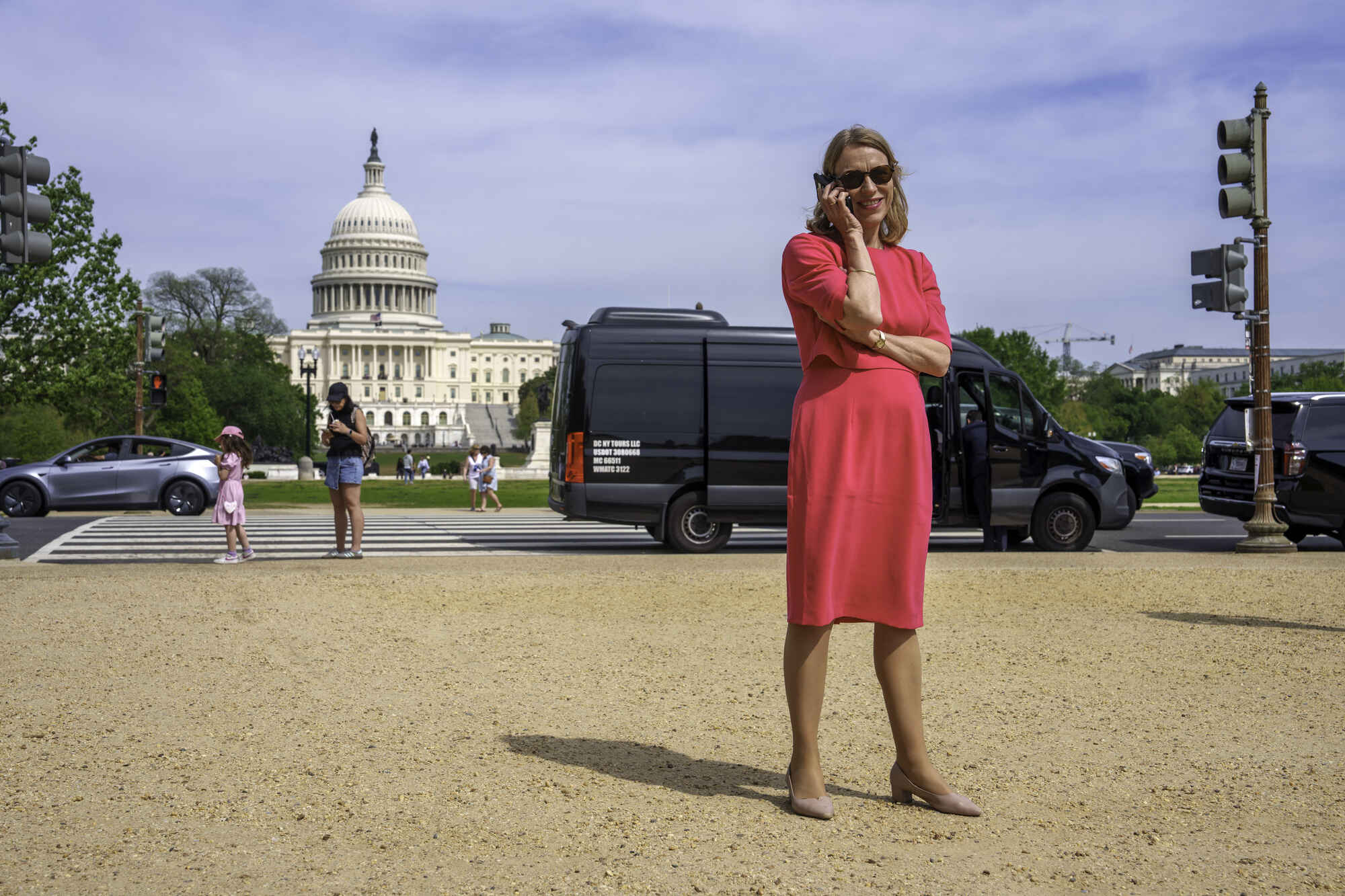 USA-ambassadør Anniken Huitfeldt utenfor Capitol Hill etter å ha besøkt USAs president Donald Trump i Det hvite hus i Washington D.C. sammen med statsminister Jonas Gahr Støre og finansminister Jens Stoltenberg 24. april 2025. Foto: Cornelius Poppe / NTB