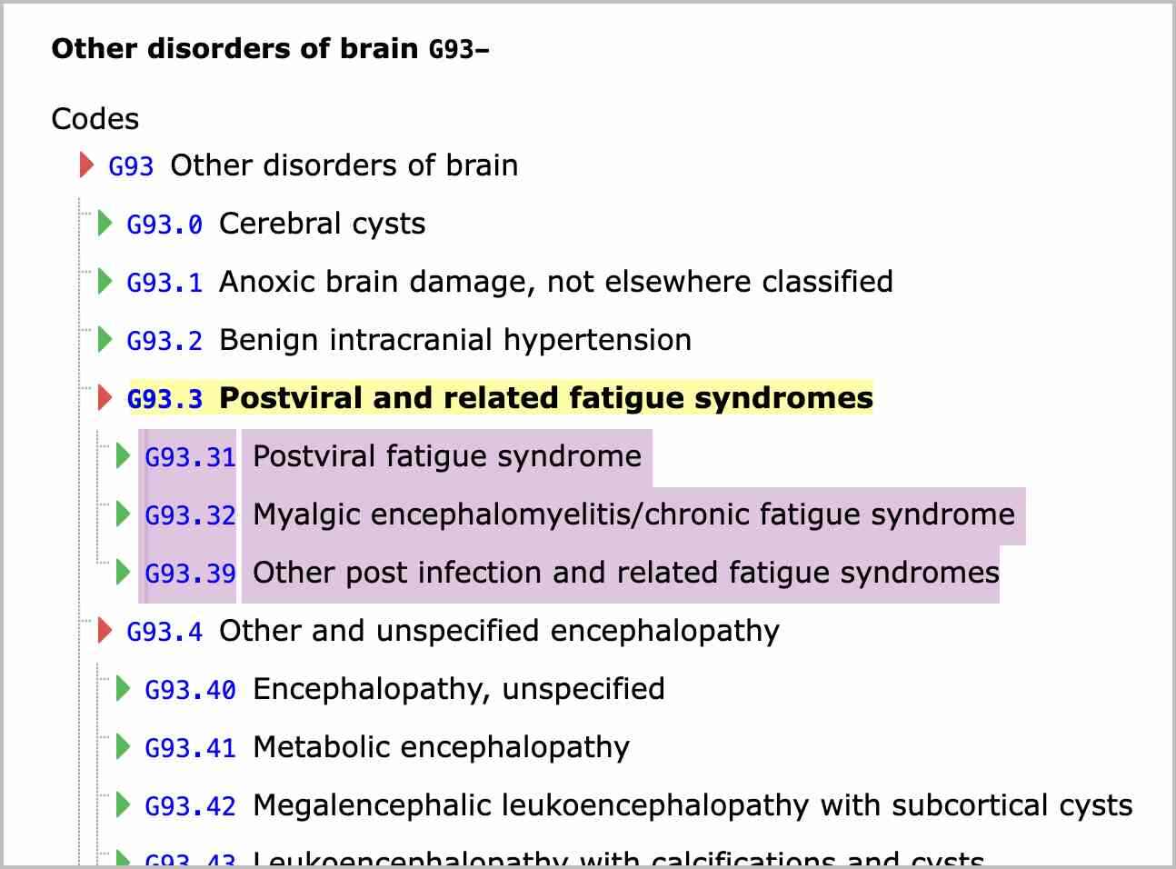 International Classification of Diseases (ICD) er et diagnostisk kodesystem utviklet av WHO, som brukes til å klassifisere sykdommer, lidelser, skader og dødsårsaker. Bildet fra ICD10data.com viser enkelte av lidelsene Storebrand har kuttet fra personalforsikringen sin.