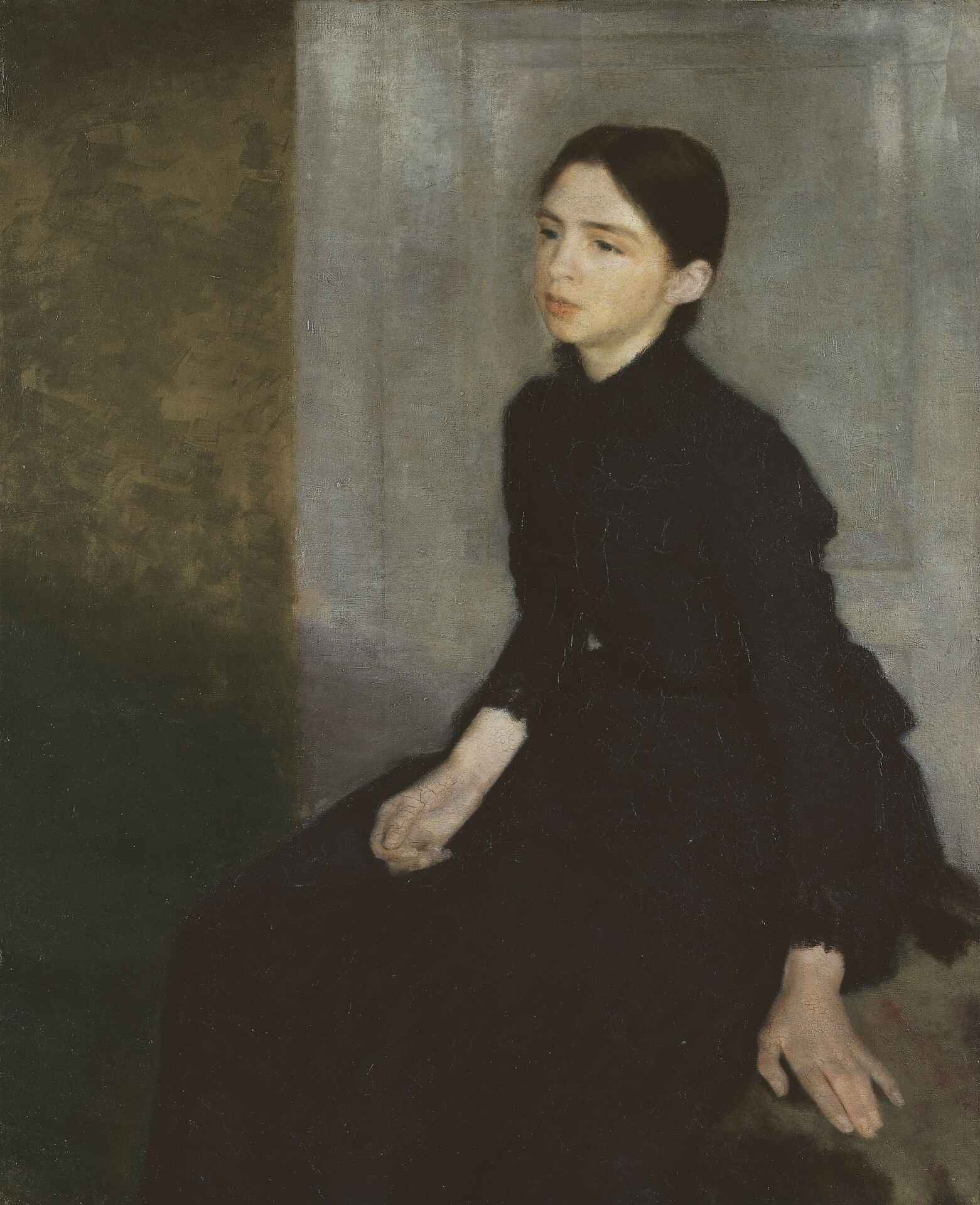 Bildet viser en del felles trekk med den omtrent jevnaldrende Vilhelm Hammershøis (1864-1916) portrett av sin søster Anna (1866 – 1956) fra 1885, nå i De Hirschsprungske Samlinger i København.