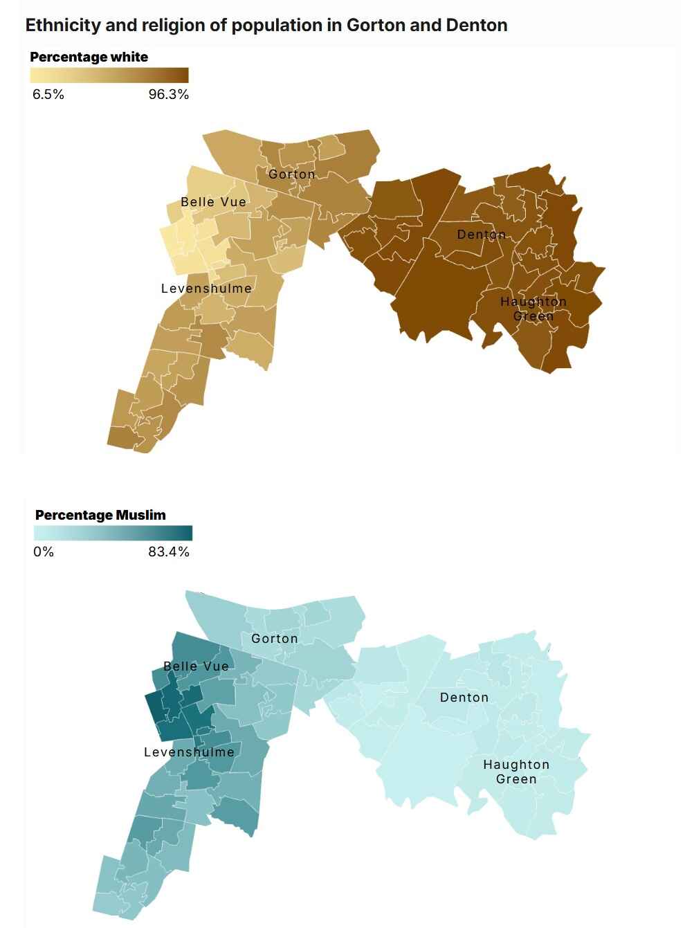 Statsviter Rob Ford har kalt Gorton og Denton et «Frankensteins monster». Kretsen ble satt sammen i 2024 av områder med svært ulik demografi.