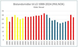 LO mottok 691 millioner kroner over bistandsbudsjettet i perioden 1999–2024. Dette fremkommer på siden Bistand i tall på Norads hjemmeside.