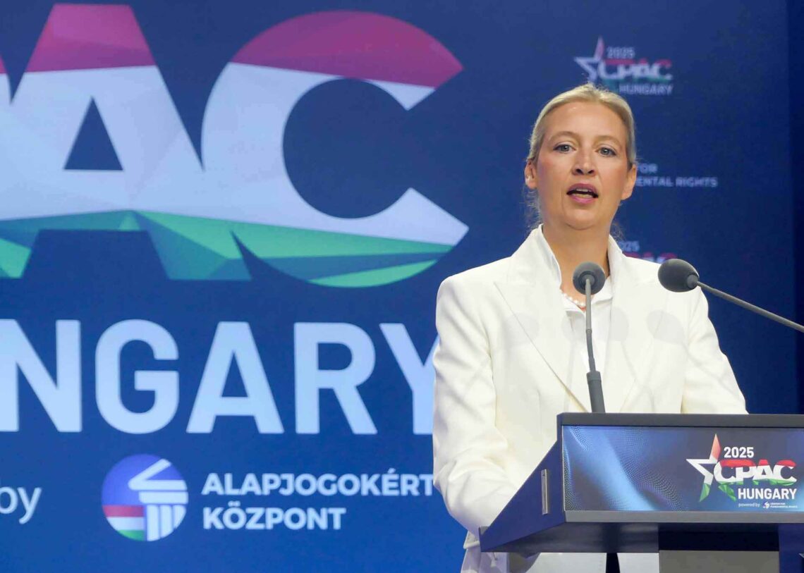 Alice Weidel fra det tyske partiet AfD sier at «demningen har bristet i Europa», efterat Ukrainas president Volodymyr Zelenskyj truet med å sende soldater til Viktor Orbáns private adresse.