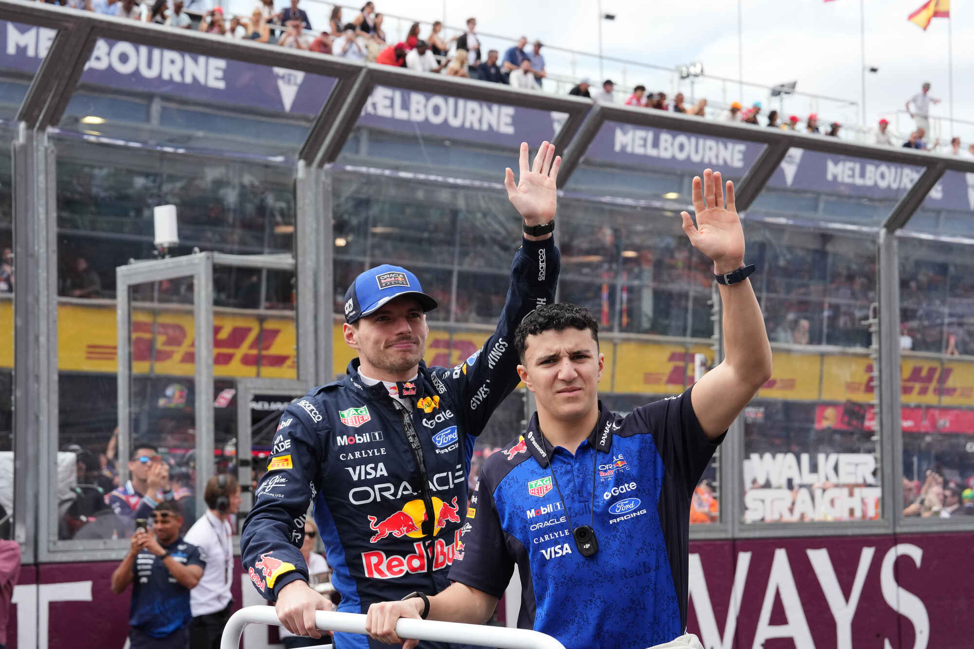 Max Verstappen (t.v.) sammen med lagkamerat Isack Hadjar under åpningshelgen i Melbourne. Foto: Heath McKinley / AP / NTB