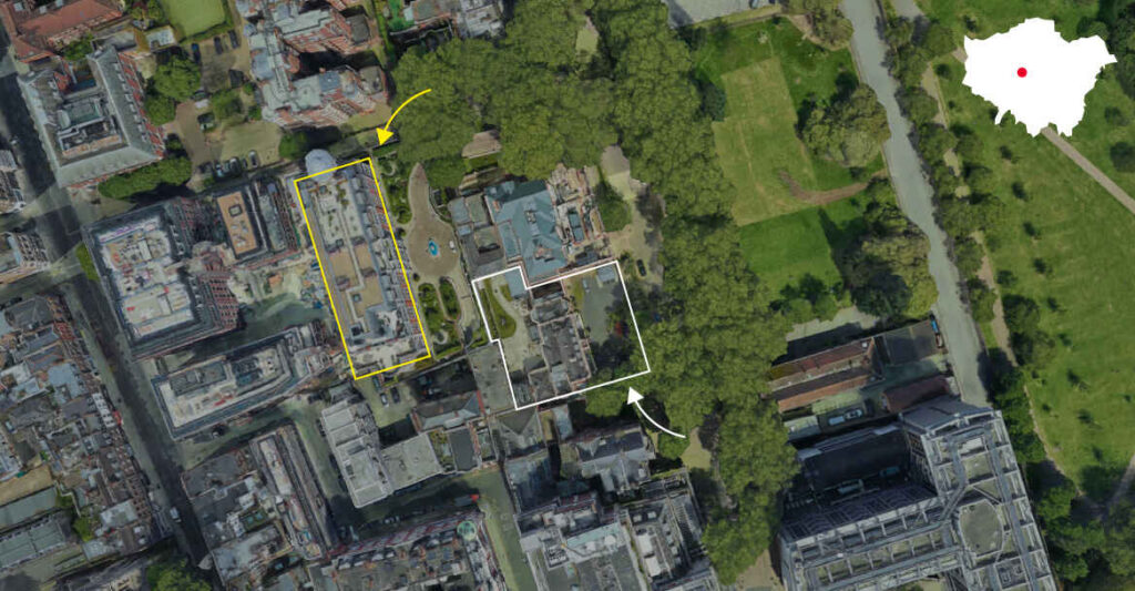 De luksuriøse leilighetene, som ligger på en av de mest attraktive adressene i London, ligger vegg i vegg med den israelske ambassaden i Kensington Palace Gardens, som selv ligger i nærheten av Kensington Palace.