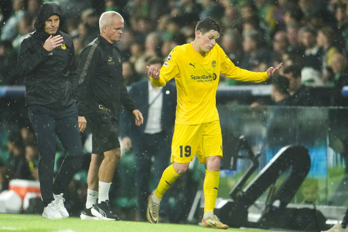 Glimt overlever det første kvarteret, med en god del flaks, og leverer så en flott kontring som passerer hele banen på få og presise pasninger. Høgh ender i praksis alene med keeper, men svikter i det avgjørende øyeblikk med en elendig avslutning langt utenfor mål.