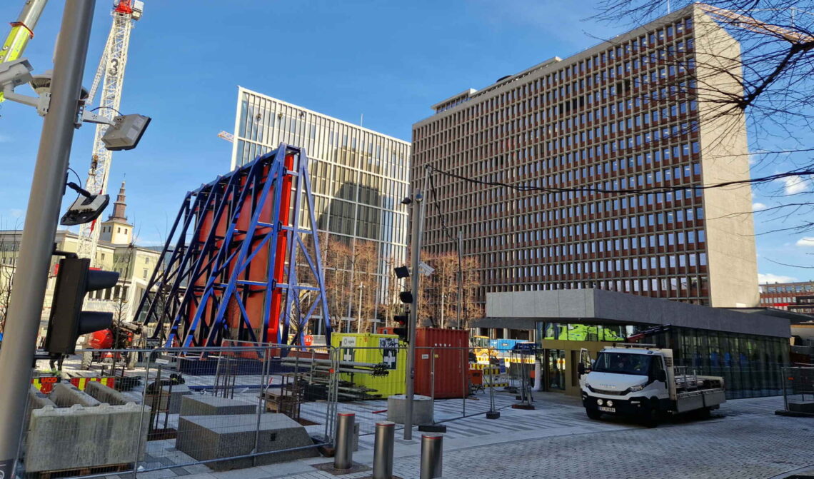 Nå skjer det noe i Regjeringskvartalet, nærmere bestemt på Johan Nygaardsvolds plass. Her pågår monteringen av torg-skulpturen til Matias Faldbakken, som for en tid tilbake vant konkurransen om beste minnemonument for 22. juli og tragedien på Utøya. Tittelen på verket er «En opprettholdelse». Av hva, bør man kanskje spørre, for det mest iøynefallende er jo den overdimensjonerte stålkonstruksjonen, som ikke trengs for å bære noen mosaikker og naturelementer fra Utøya. I det perspektiv er stålriggen et kunstnerisk fremmedelement.