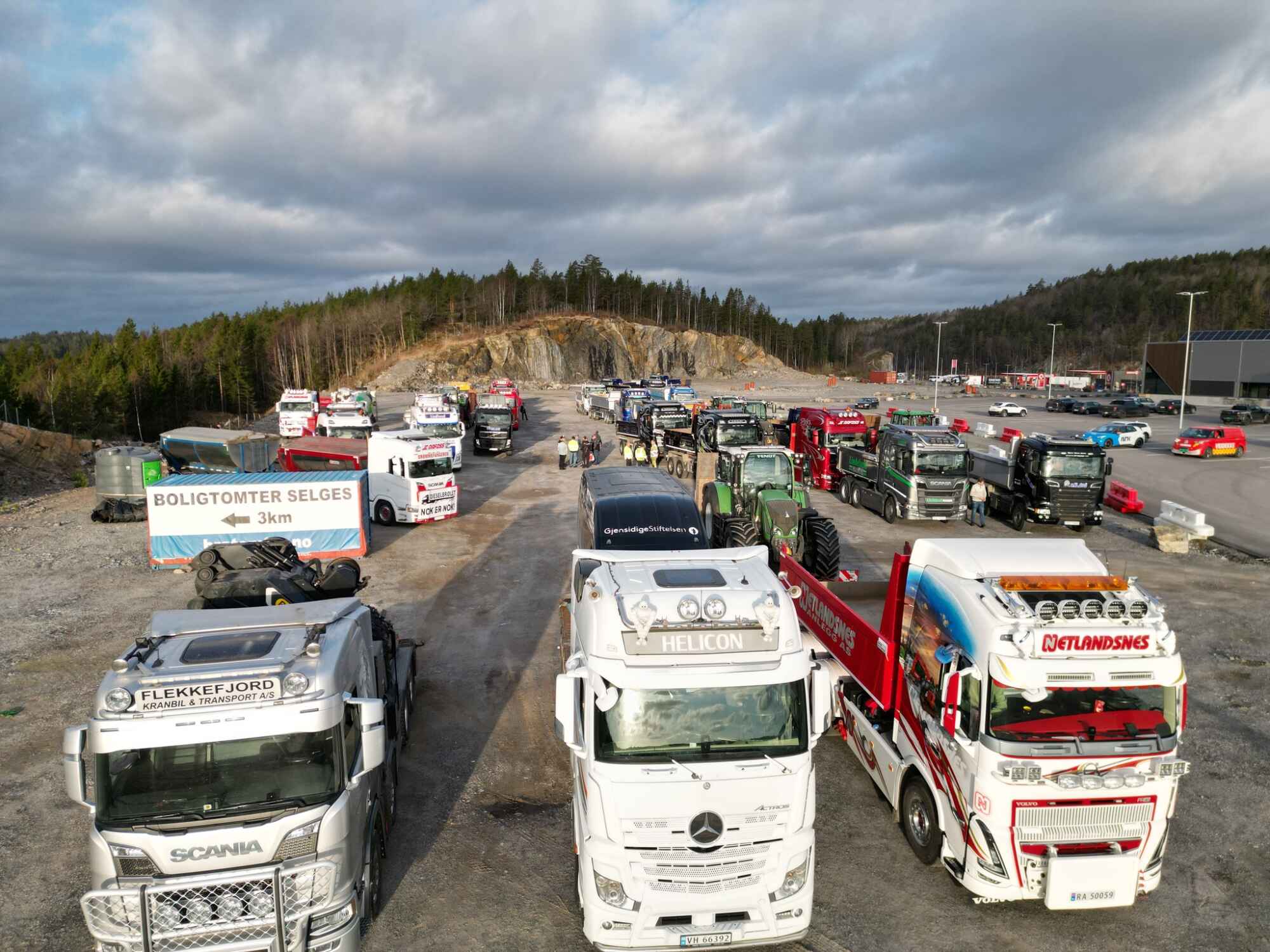 Lastebilene begynner å samle seg på Langrønningen. Foto fra omtrent kl. 08.00. Foto: Dieselbrølet